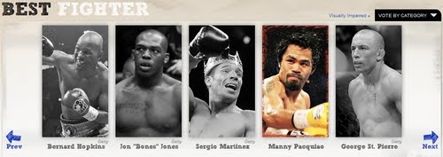 Pacquiao is up against fellow boxers Sergio Martinez and Bernard Hopkins, and Mixed Martial Arts (MMA) fighters Jon “Bones” Jones and George St. Pierre.